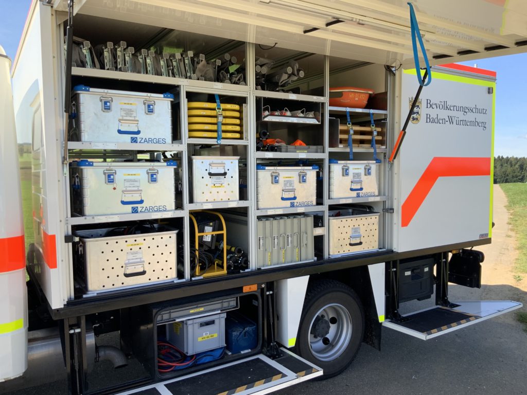 Das Fahrzeug dient der Bewältigung von Großschadensereignissen bei einer Vielzahl von Verletzten oder Erkrankten.